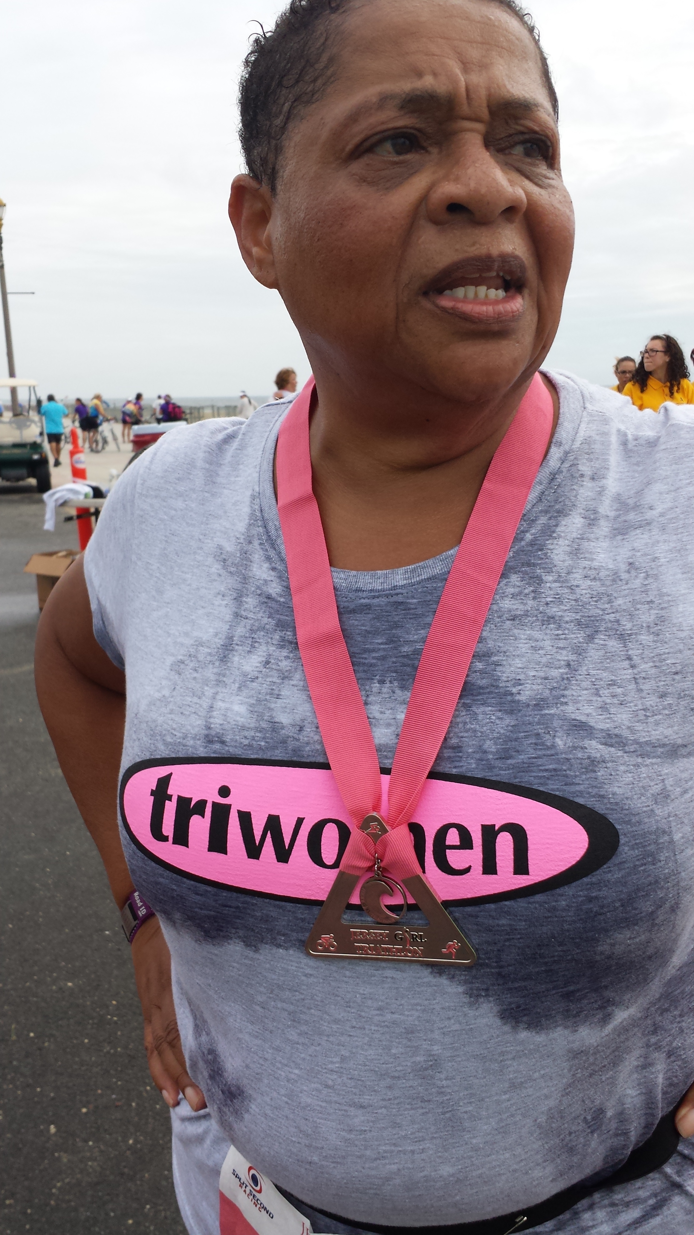The bike ride was an 11 mile nightmare.  My new friend Nancy rescued me at about mile six and rode the rest of the way with me talking to me the whole time. I was ready to stop. That course wasn’t what I’d call flat and we were riding into the wind coming back. I had on an open jacket which was like wearing a sail I’m sure. People have suggested that I might have done better with a road bike but one, I just bought my bike and two I swear people went by me on what looked to be the old Schwin bikes I grew up on. I just needed more training rides.