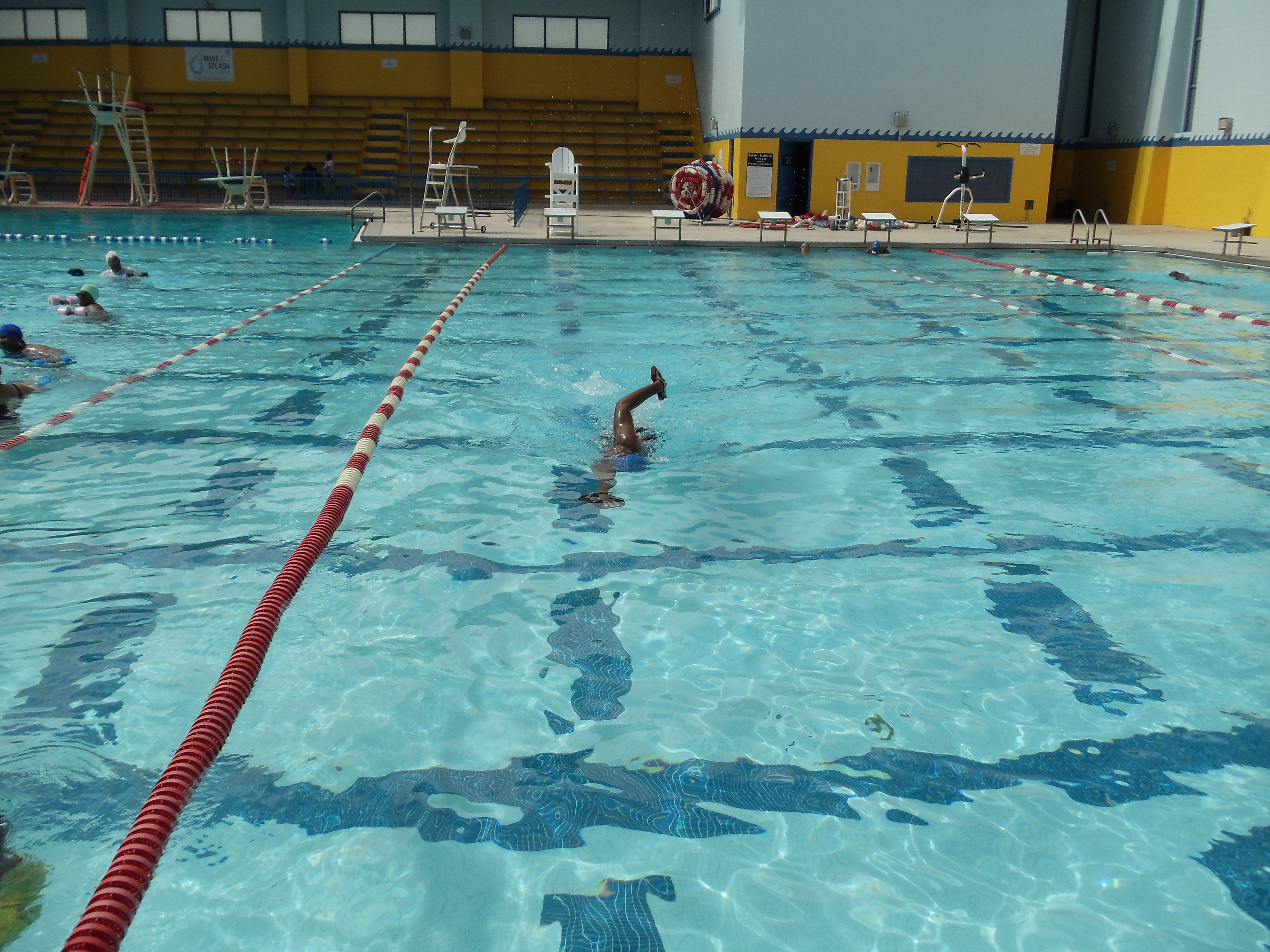 So I just read Leah’s comment to me and I do have to remember that I am not competing with those ladies that are setting their watches and running like hell into the water. I cannot promise yet that I won’t let them fluster me. In the end of April my buddies and I entered and indoor Triathlon at Montclair State University here in New Jersey. This was just for fun as far as we were concerned. I didn’t even know that the “winners” were getting prizes. So the deal was swim for 10 minutes, ride spin bikes for 30 minutes and run(in my case walk) on the treadmill for 20 minutes. Keep in mind that I swim three to four days every week.
